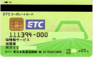 日本高速道路株式会社が発行貸与している法人用ETCカードです。車両限定カードです。